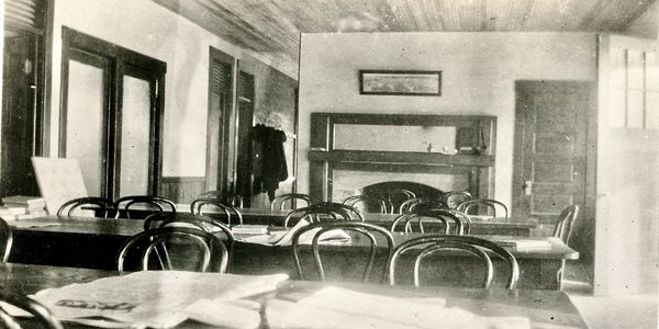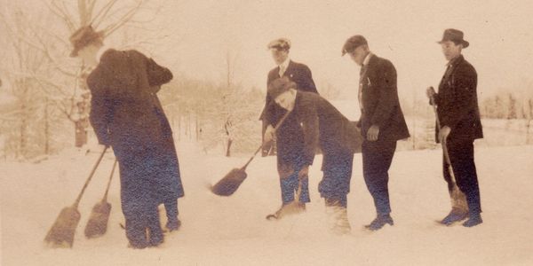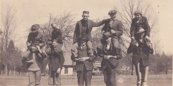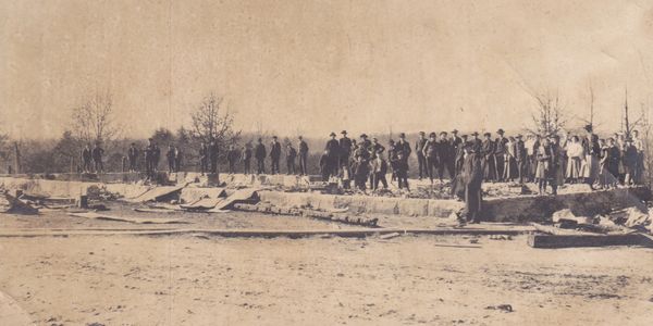 L to R - Cal Dye, Henry Bivins (background), Ed Holloway, Ralph Boynton, Bob Cawood (background), Ralph Boynton, John Dunlap, Frank Wyatt, Jacob Wyatt