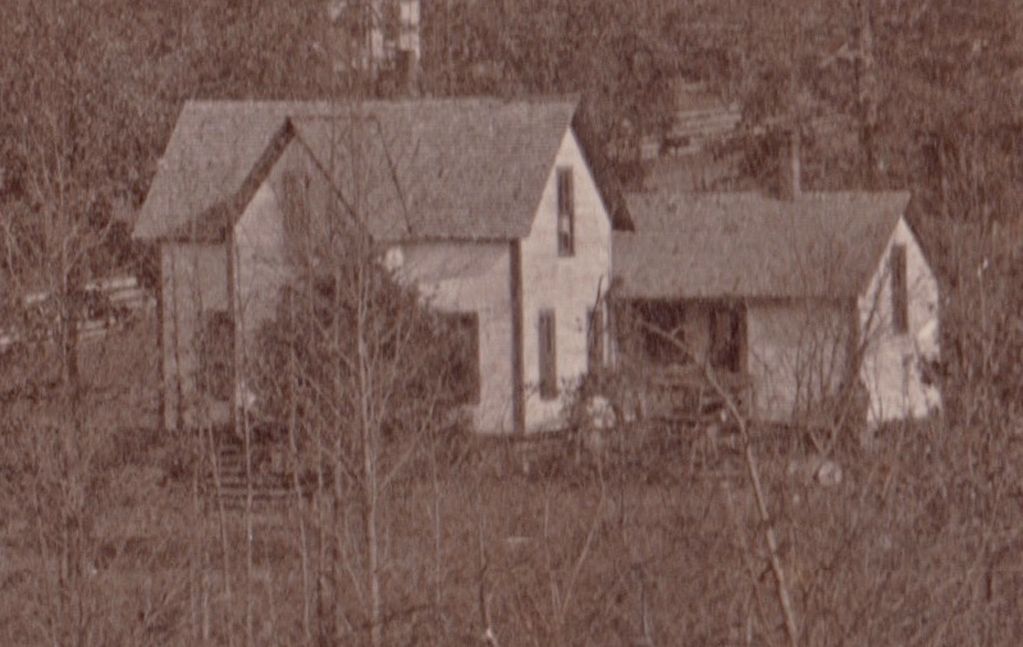 Home of A. A. (Abijah Adam) Hubbard family (foreground). Constructed circa 1877, it was destroyed by fire in the 1930s.