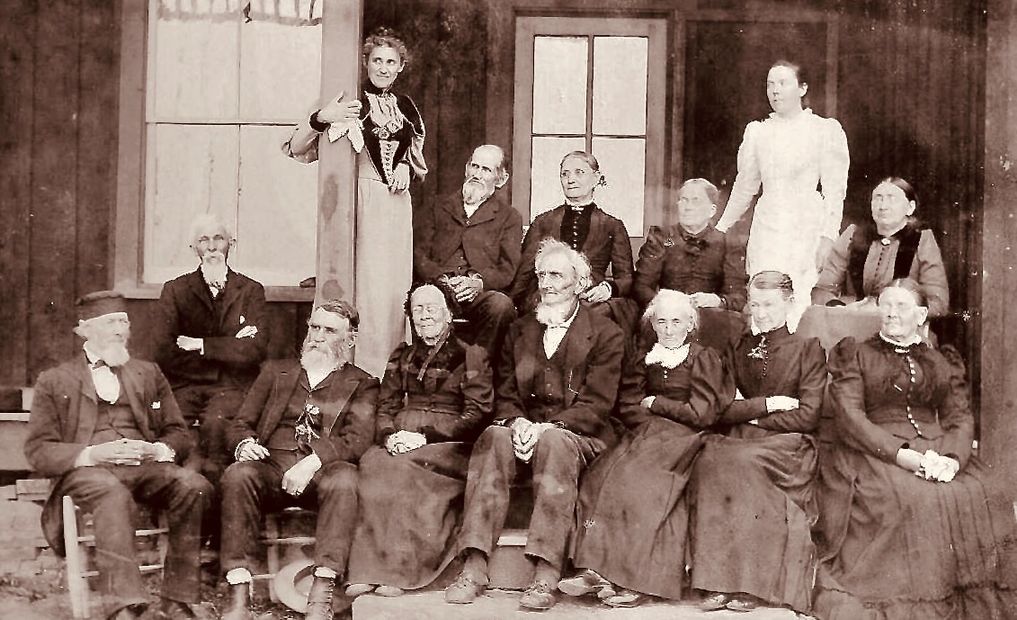 Front Row, L to R - Eastland Leander Stratton, Thomas Cary, Mrs. Jere Shufeldt, Samuel Quick, Wealthy (Gaylord) Marsh, Margaret Quick (wife of Samuel).