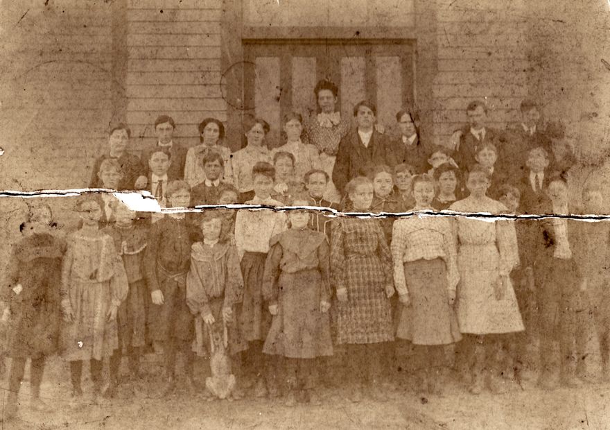 Fourth Row, L to R - Josie Hyder, Taylor Dannel, Miss Ellen Click (teacher), Unknown (in front of Ellen Click), Ben Reed, Abel Newby,Cassius Harmon.