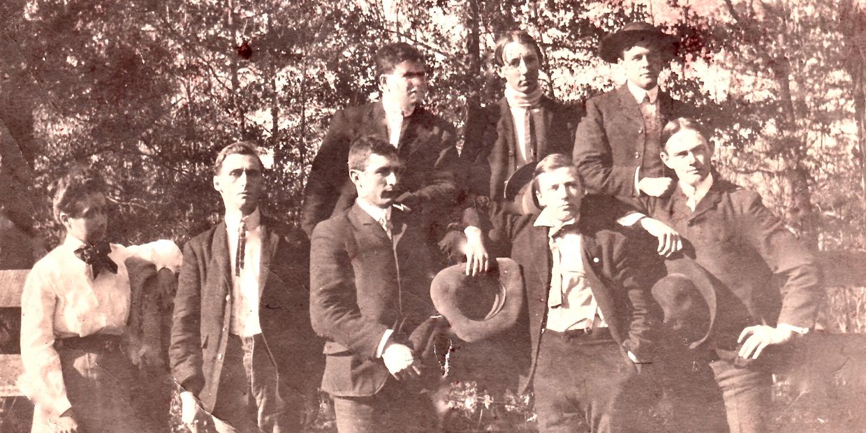 Kneeling Middle, L to R - Unknown, Vinet Renfro, Burton Davis, William Kyker, John Walker, Frank Kyker.