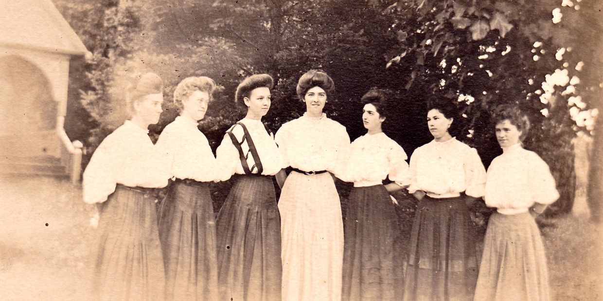 Middle Row, L to R - Emma McClelland, Esther Hinds, Unknown, Mary Stinecipher, Olive Hinds.